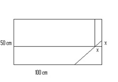 Aufgabe 5: Aus einer rechteckigen Fensterscheibe mit den Seitenlängen a=50 cm und b=100 cm ist vom Mittelpunkt der kleineren Seite aus eine Ecke unter einem Winkel von 45o abgesprungen. Aus der restlichen Scheibe soll durch Schnitte parallel zu den ursprünglichen Seiten eine möglichst große Scheibe hergestellt werden. Gib die Maße der neuen Scheibe an.