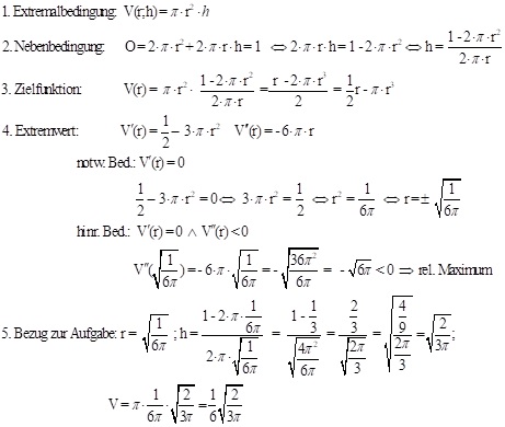 Beispiel: Welche zylindrische Dose mit dem Oberflächeninhalt 1 dm2 hat das größte Volumen?