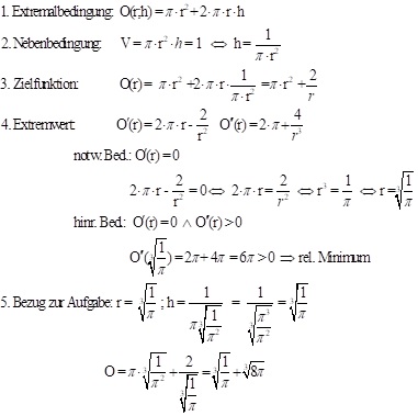 Aufgabe 1: Welches oben offene zylindrische Gefäß mit 1 l Fassungsvermögen hat den geringsten Materialverbrauch?