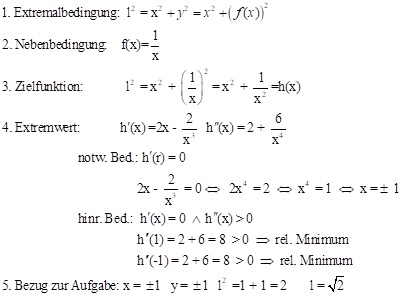 Aufgabe 3: Welcher Punkt des Graphen der Funktion f(x) = 1/x hat vom Koordinatenursprung minimalen Abstand?