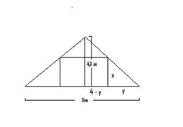 Aufgabe 4: Ein Dachboden hat als Querschnittsfläche ein gleichschenkliges Dreieck mit einer Höhe von 4,8 m und einer Breite von 8 m. In ihm soll ein möglichst großes quaderförmiges Zimmer eingerichtet werden.