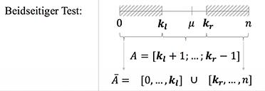 Bei einem Hypothesentest kann es einen einseitigen (größer gleich oder kleiner gleich) oder zweiseitigen (Intervall) Hypothesentest geben.