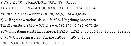 – zu den 10 % größten gehört. - Gib ein um den Erwartungswert symmetrisches Intervall an, in dem die Größen von 95 % aller Männer liegen.