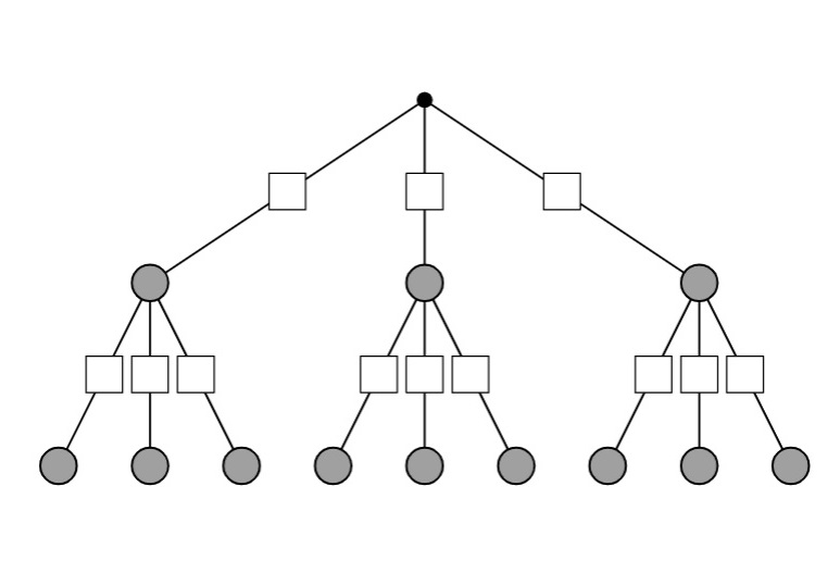 Komplizierte Zufallsexperimente, bei denen mehrmals gezogen wird oder mehrere Ereignisse betrachtet werden, kann man zur Vereinfachung in einem sogenannten Wahrscheinlichkeitsbaum aufzeichnen und die einzelnen Wahrscheinlichkeiten daran notieren. Dabei ist jede Stufe des Baums eine Ziehung oder ein anderes Merkmal. Dabei kann der Wahrscheinlichkeitsbaum waagerecht oder auch senkrecht aufgezeichnet werden.