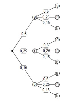 P((g,g))+P((r,r))+P((b,b)) = 0,6‧0,6+0,25‧0,25+0,15‧0,15